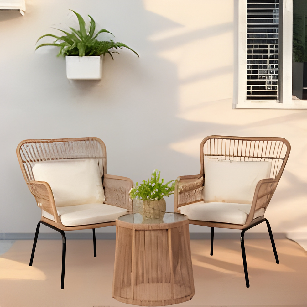 Eloise White And Wicker Outdoor Furniture Set With Table